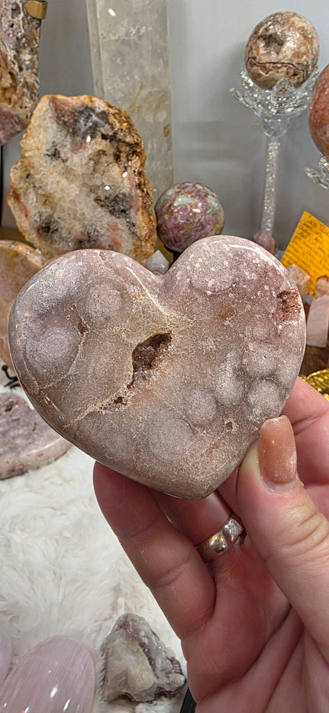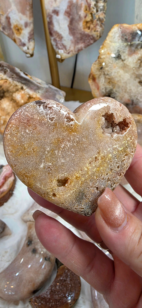 PINK AMETHYST HEART W/ GEODES ON A STAND