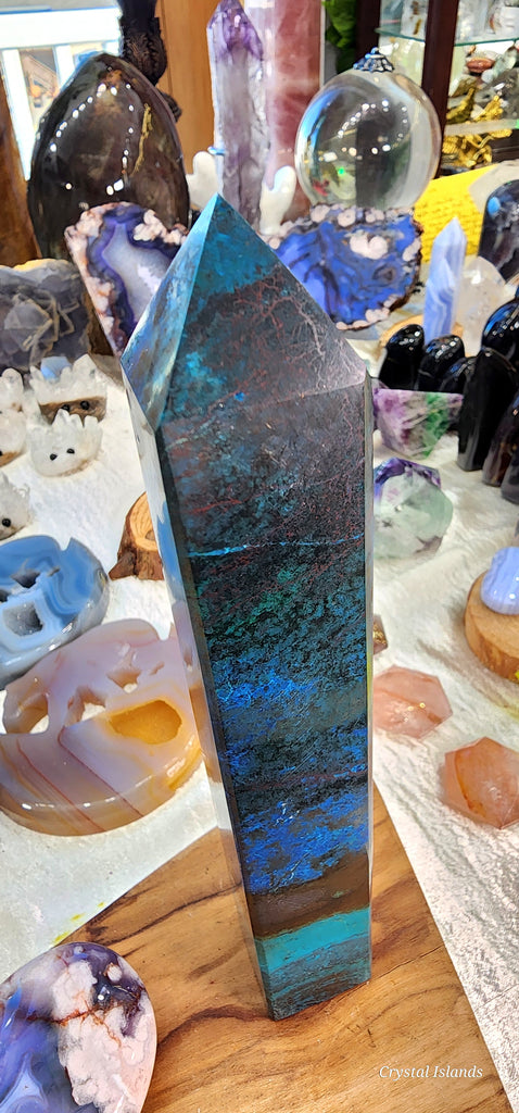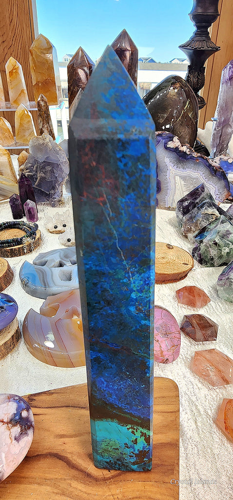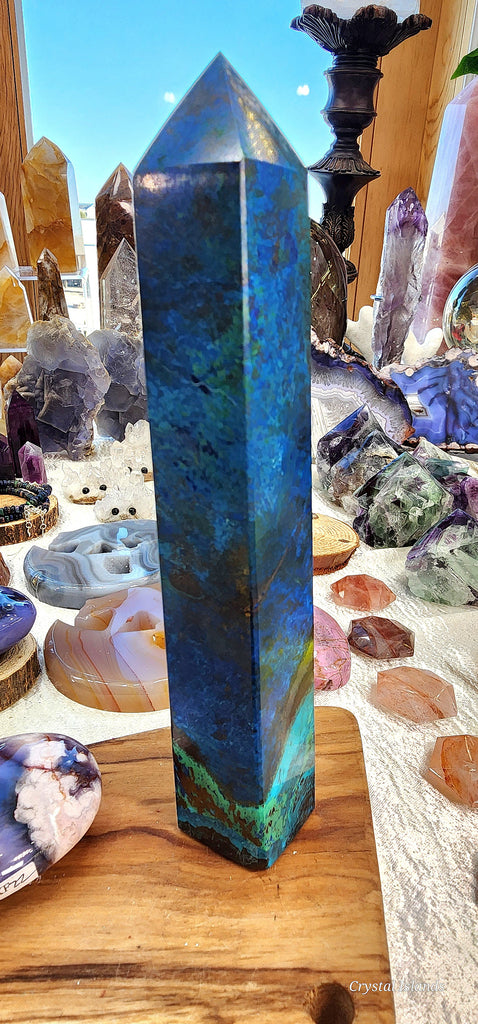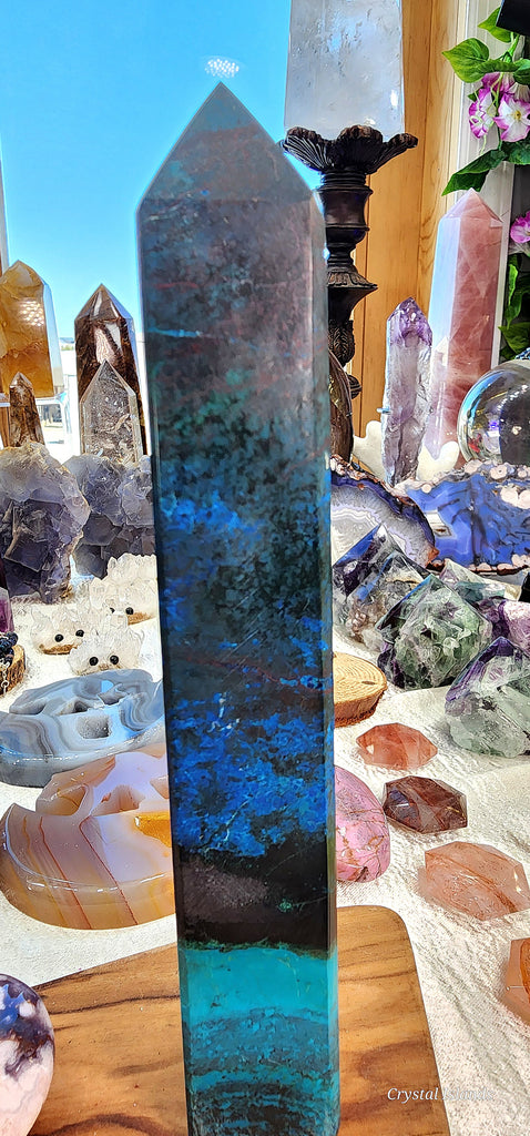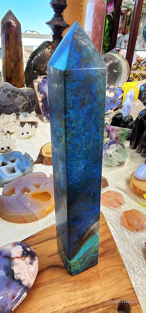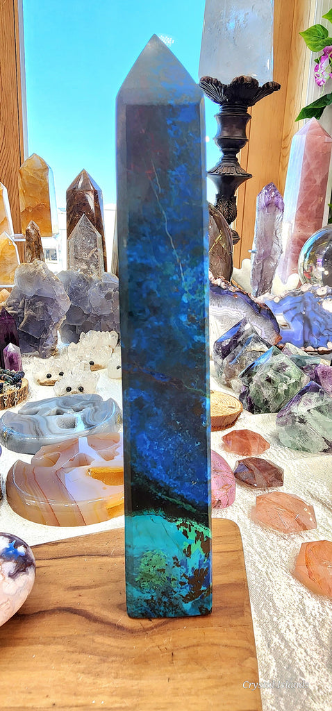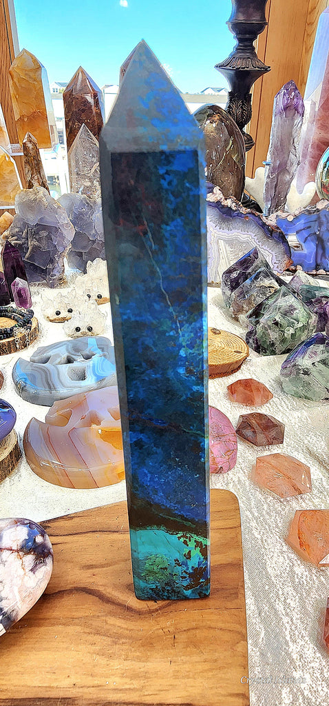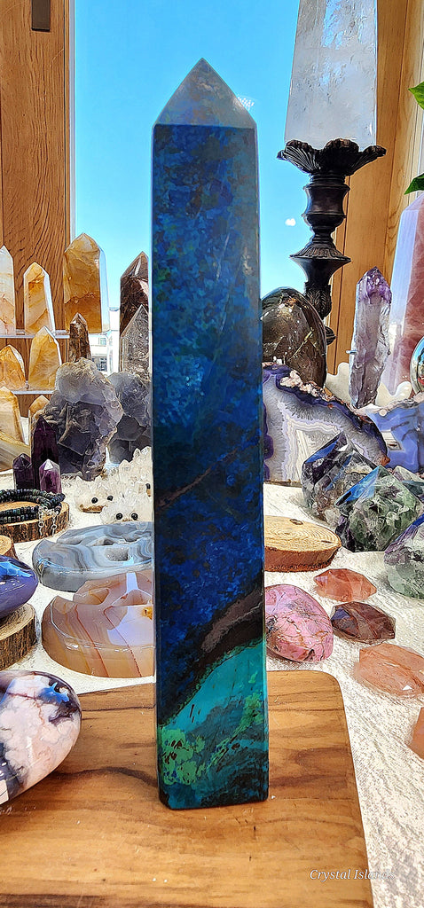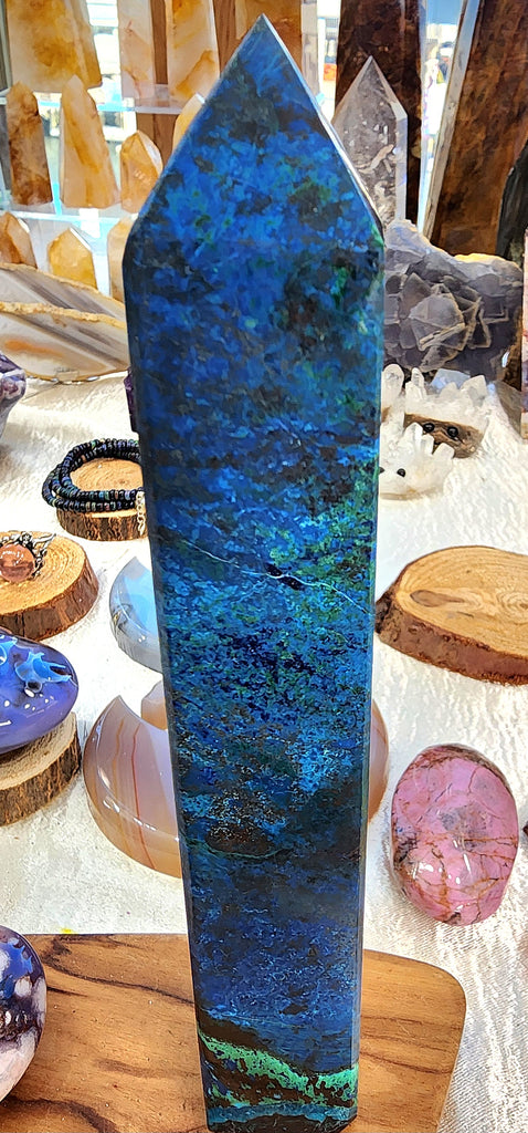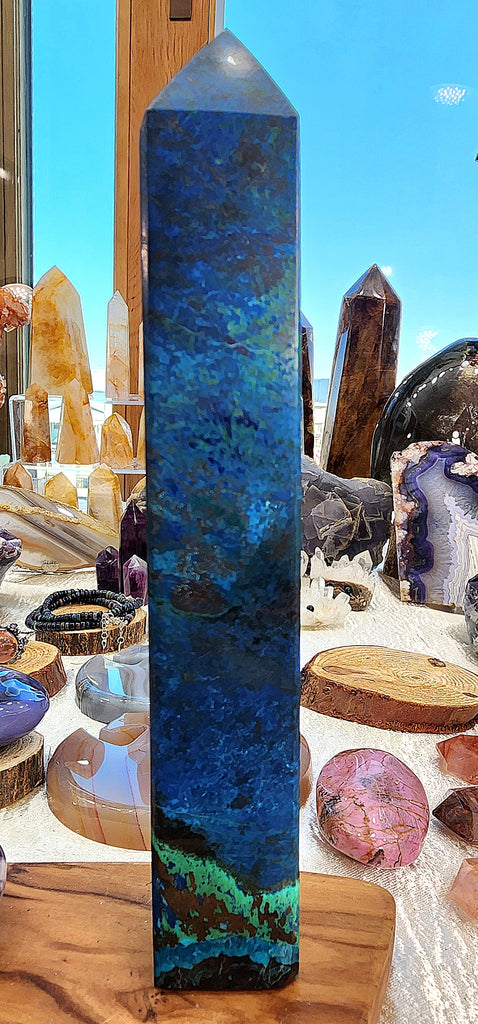 AZURITE CHRYSOCOLLA TALL TOWER - is backordered and will ship as soon as it is back in stock.