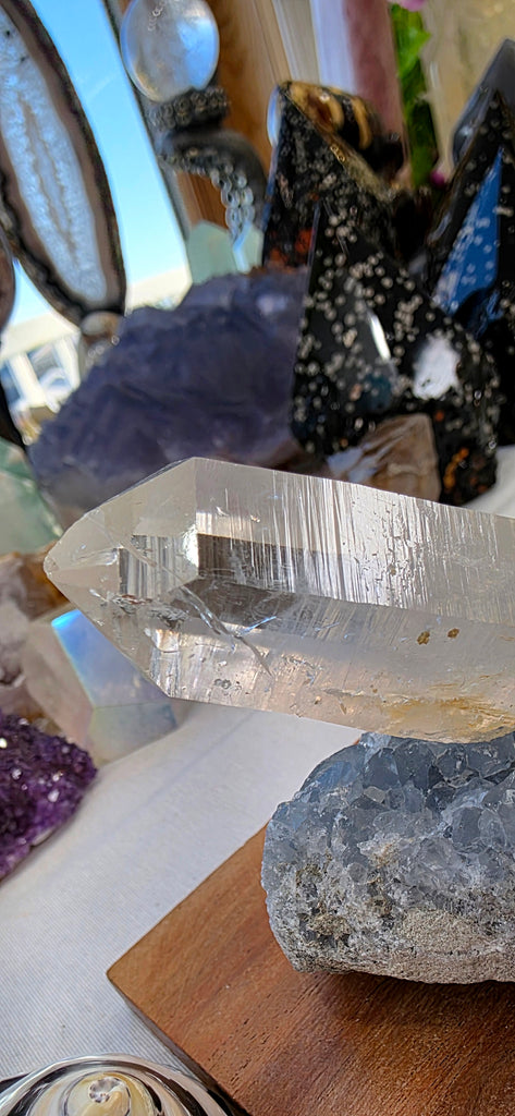 Blue Smoke, is a new find, out of Columbia they are a variety of Lemurian with blue gray ghost phantoms, micro penetraitors and rare inclusions of Lamela, ,data:text/mce-internal,rte__editor,Microline Micca, and Lithium. We are still learning a lot about its properties. The energy is refreshing to the soul anf emotional body.