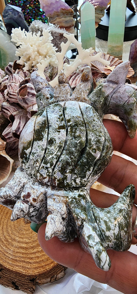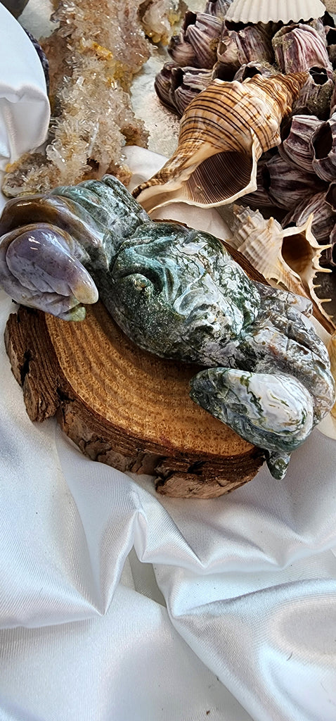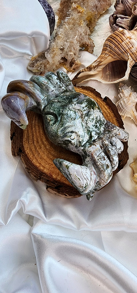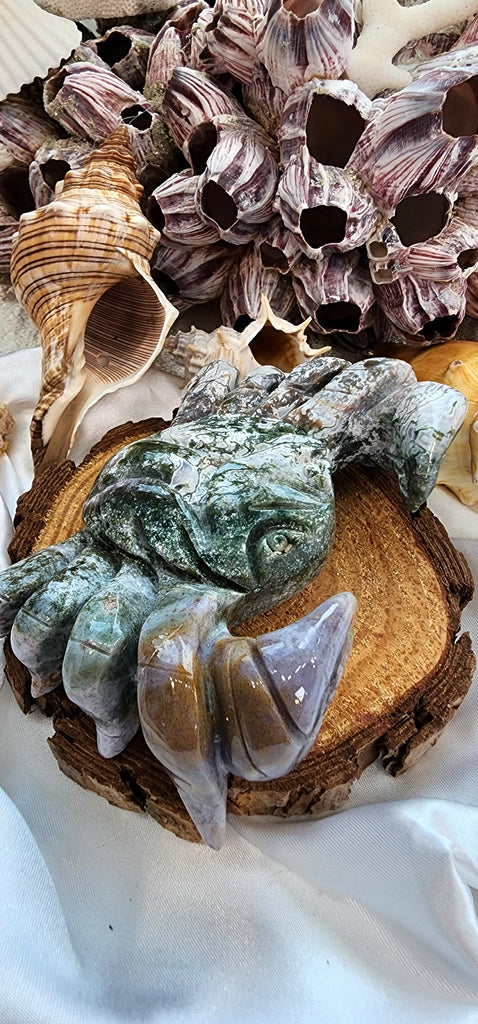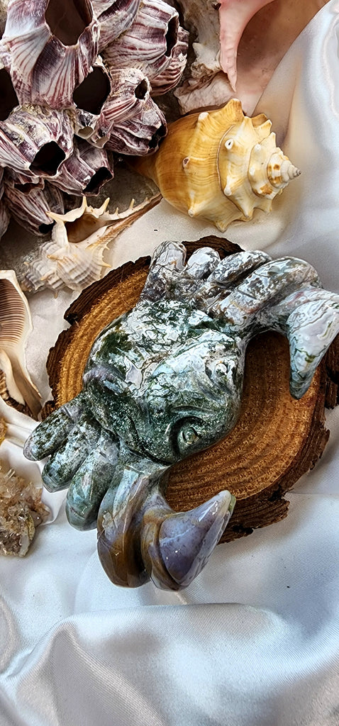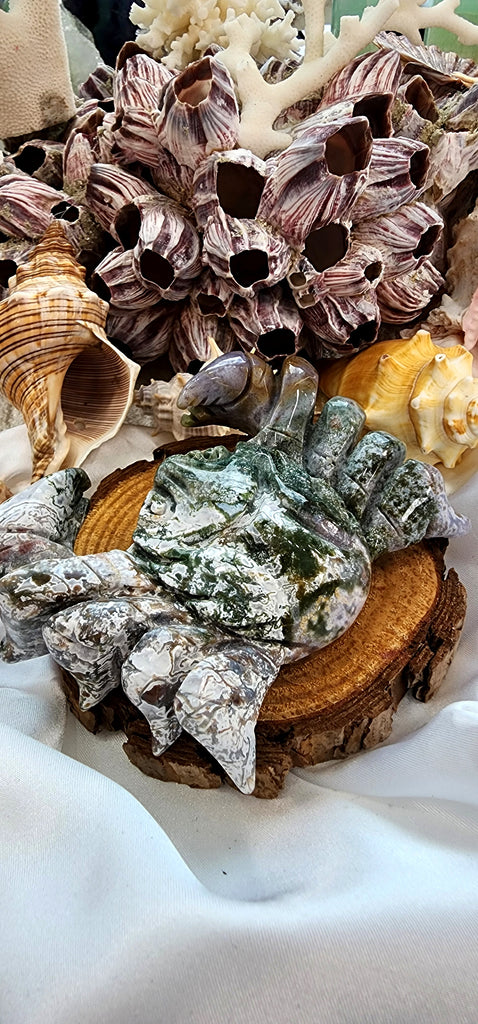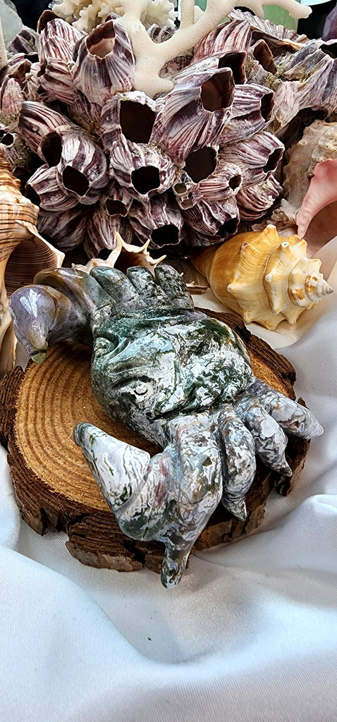 CARVED MOSS AGATE CRAB
