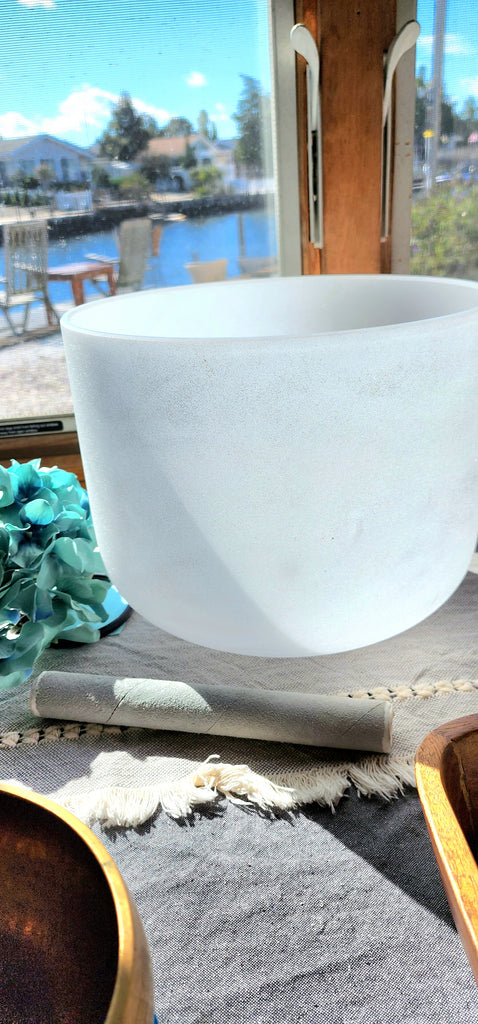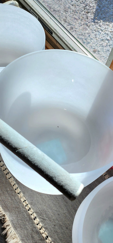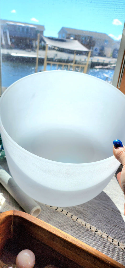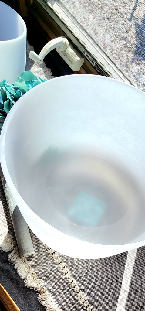 FROSTED QUARTZ SINGING BOWL NOTE D 11 INCH
