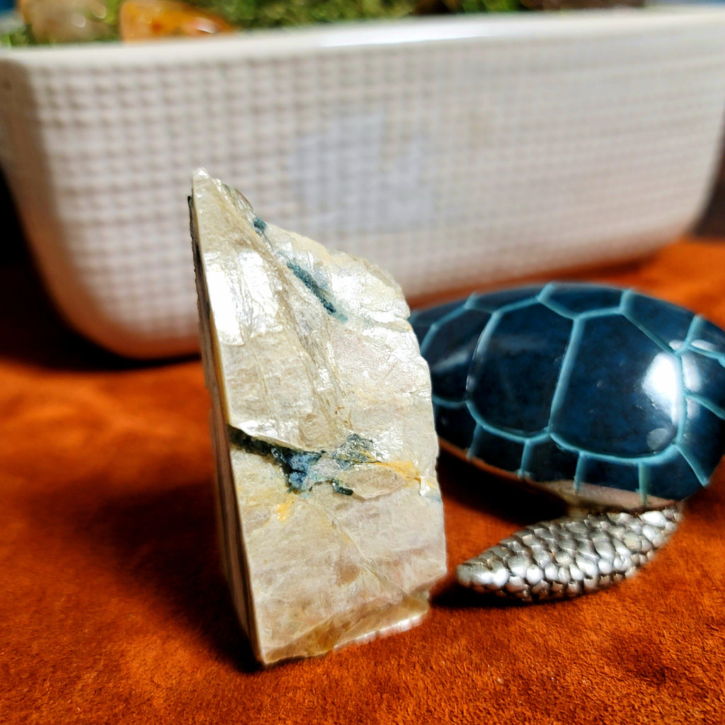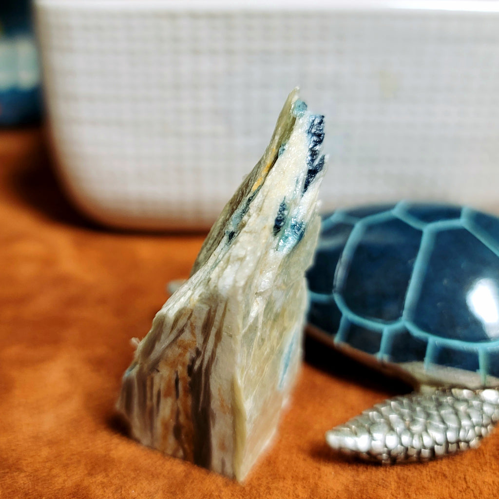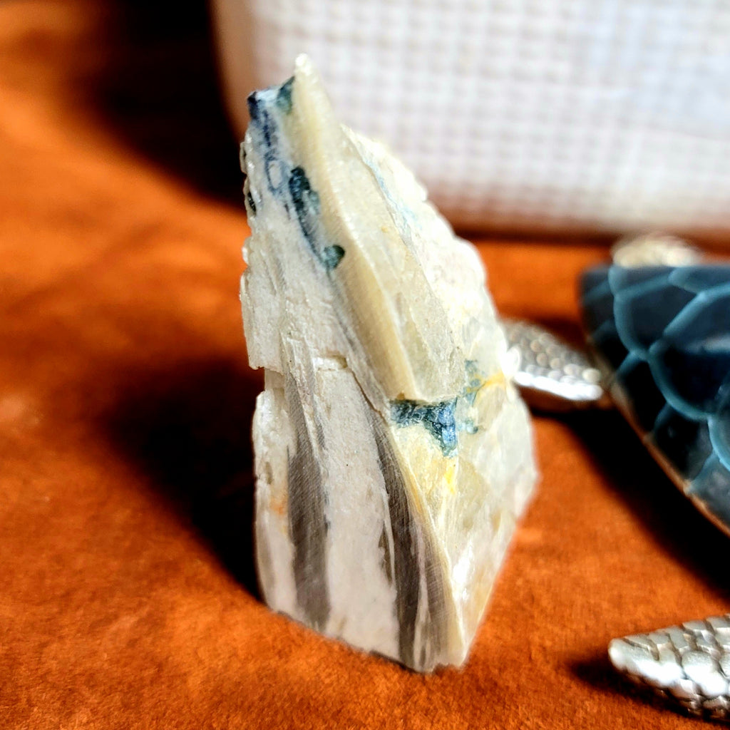 This particular piece is Illumination which is piezoelectric, which means when you press on the blue tourmaline or squeeze lightly a reaction of negative ions and electromagnetic field is produced. These bring feelings of euphoria... hence the name Euphoralite