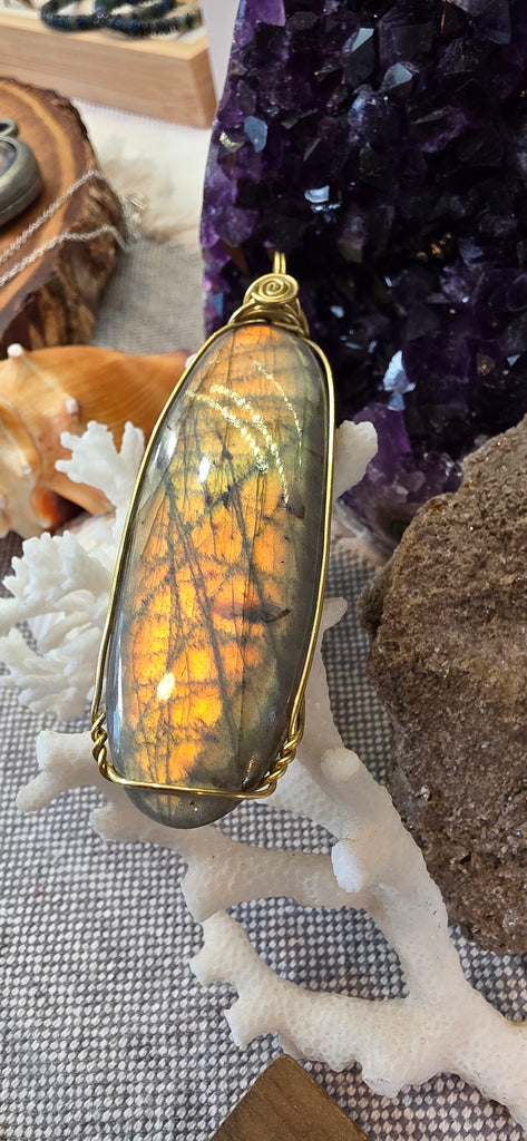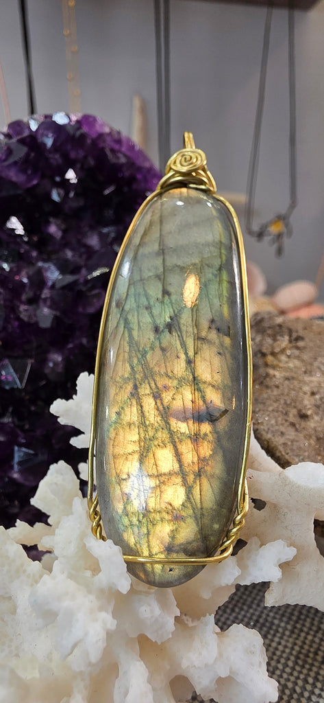 LABRADORITE LONG OVAL PENDANT GREAT COLORS - is backordered and will ship as soon as it is back in stock.
