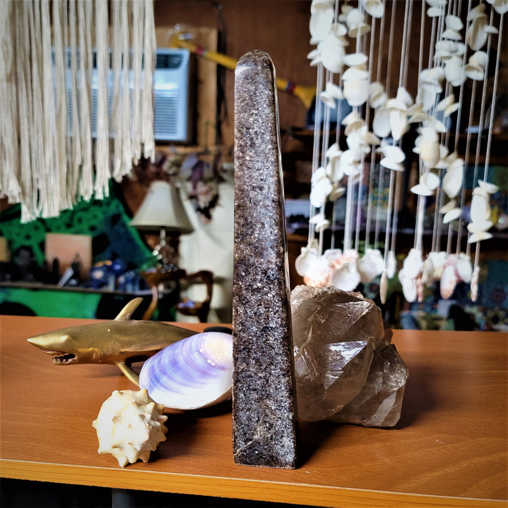 This is a high lithium lepidolte Midnight Tower. It brings strong spiritual energy, strength, and emotional balance