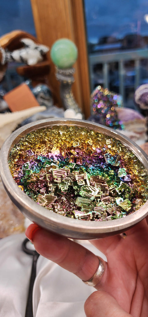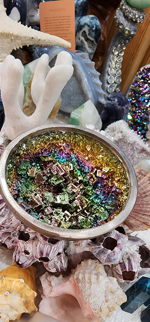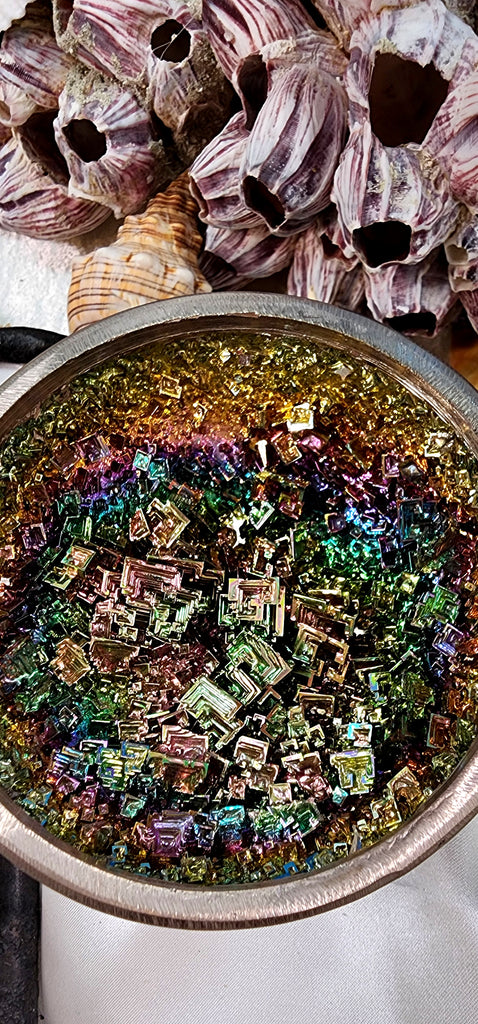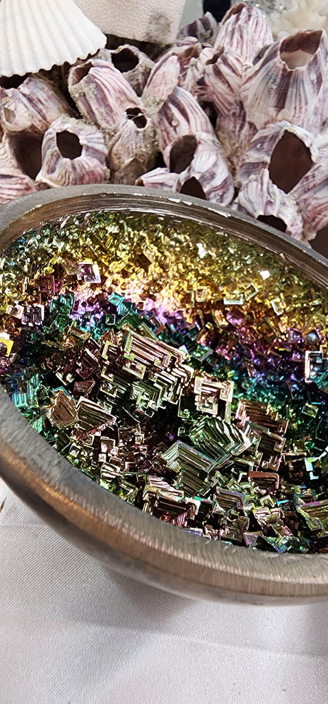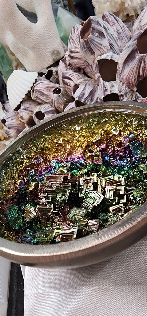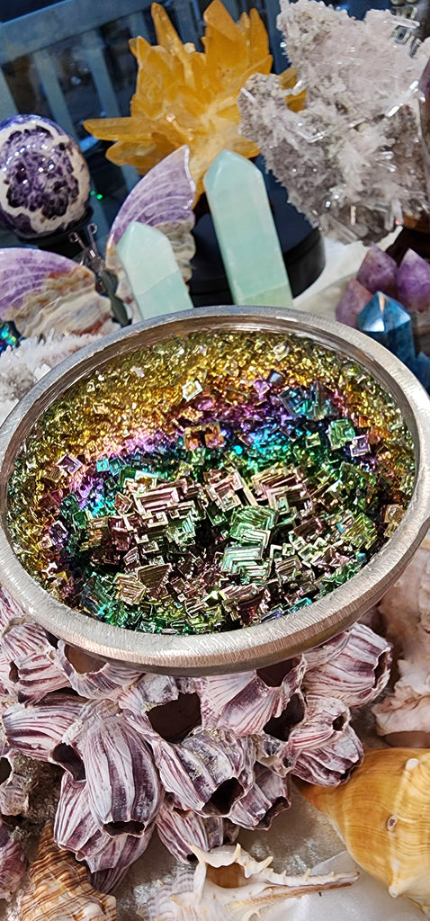 Bismuth embraces change with an open mind and allows the outcome to unfold as it intended to be. It allows the acceptance of others uniqueness and cultivates a greater sense of belonging and joy.