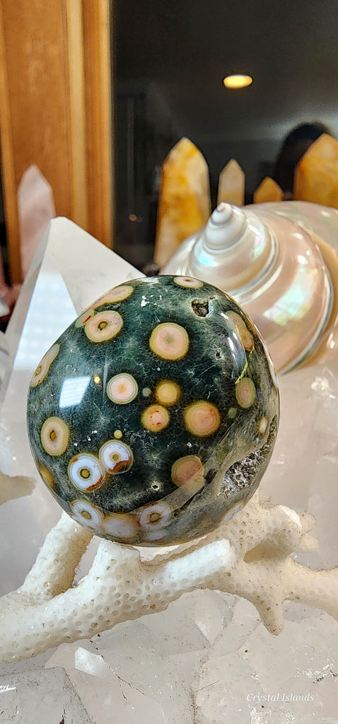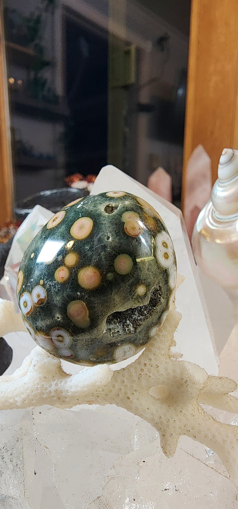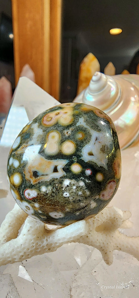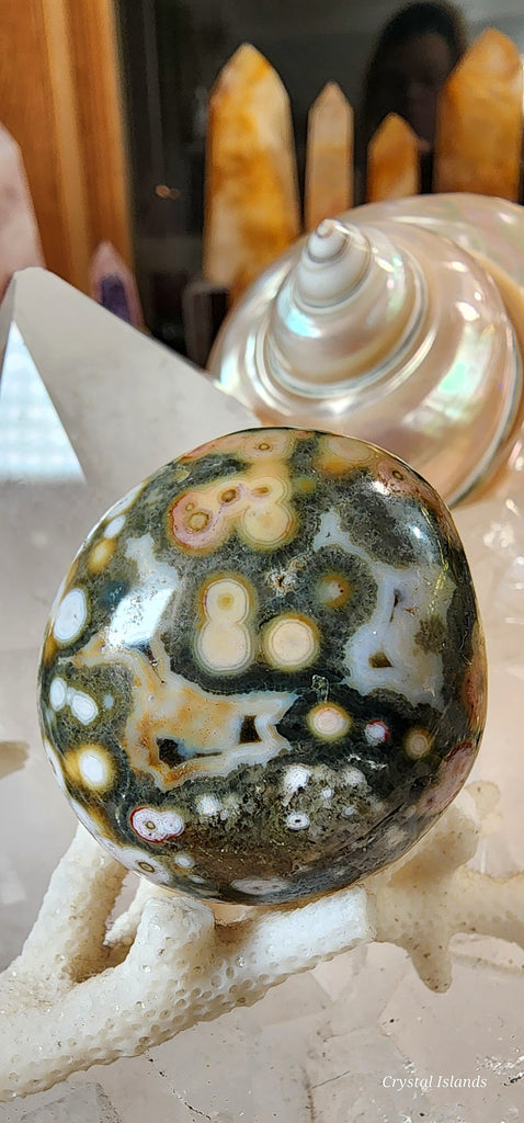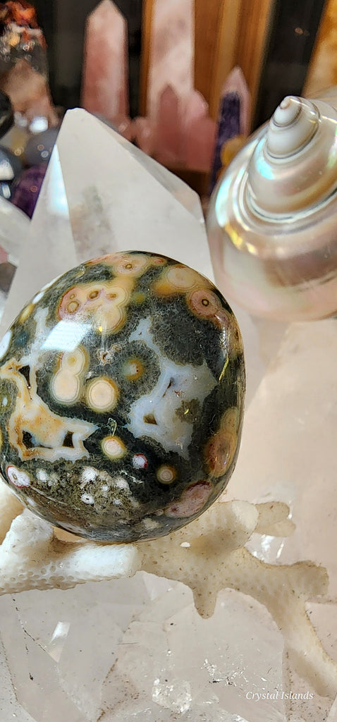 Ocean Jasper is a soothing centering stone that is useful in facilitating meditative states and experience the presence in the moment. Ocean Jasper can help enhance endurance and stamina, and work overtime to increase the amount of Chi.