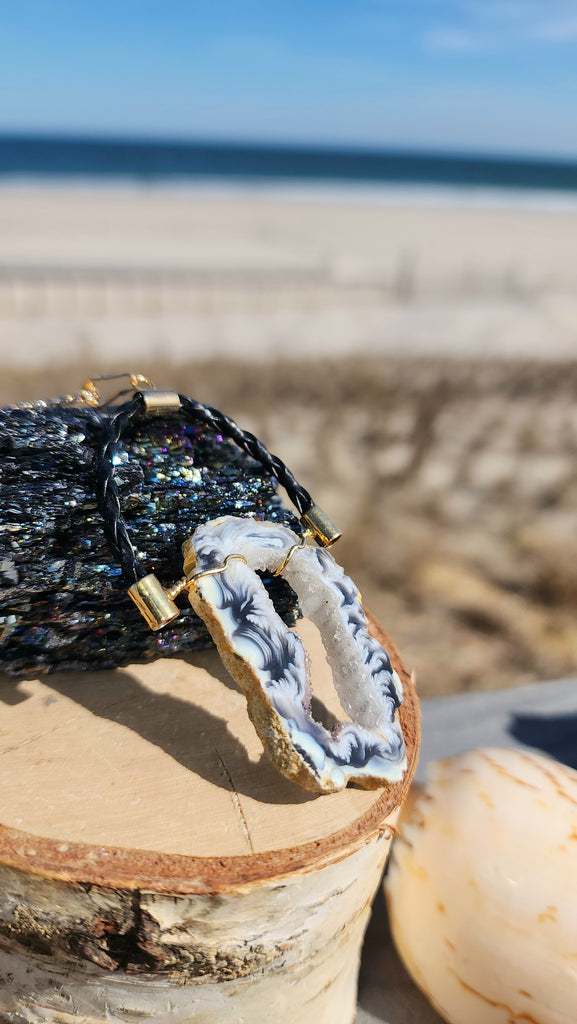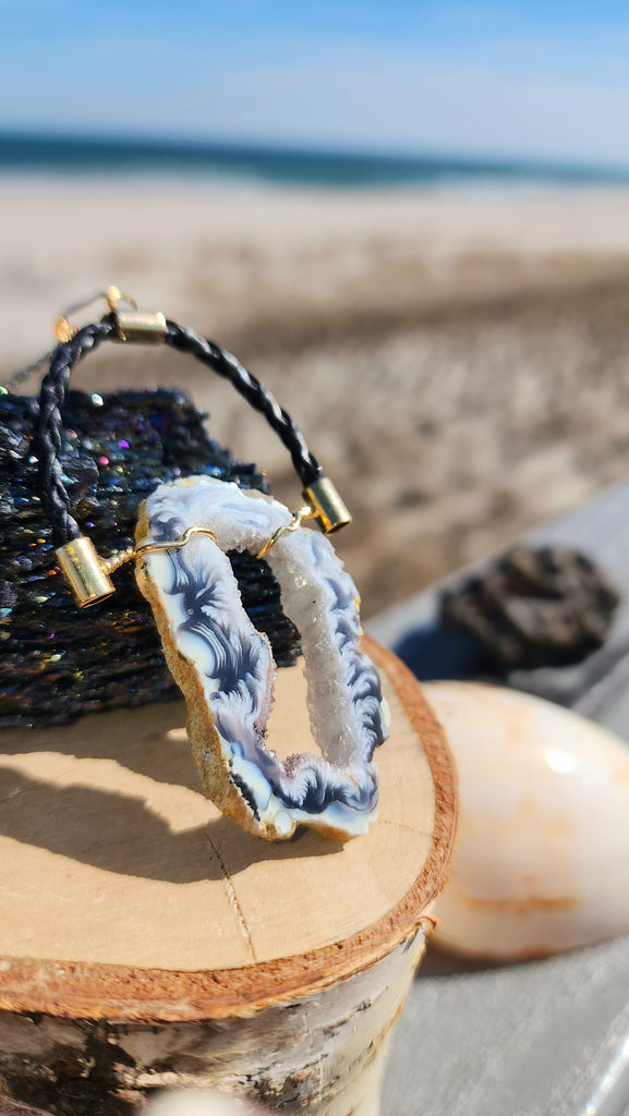 AGATE OCOS GEODE PENDANT WITH LEATHER
