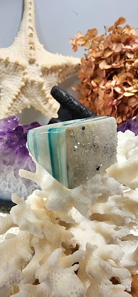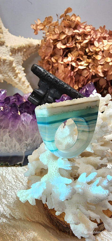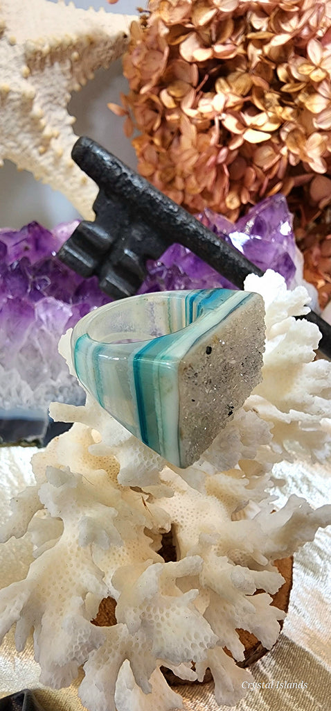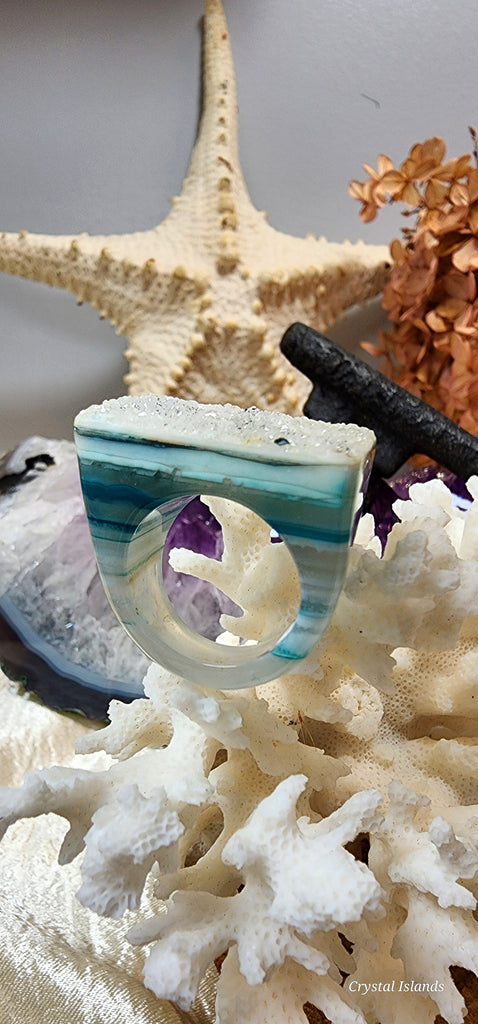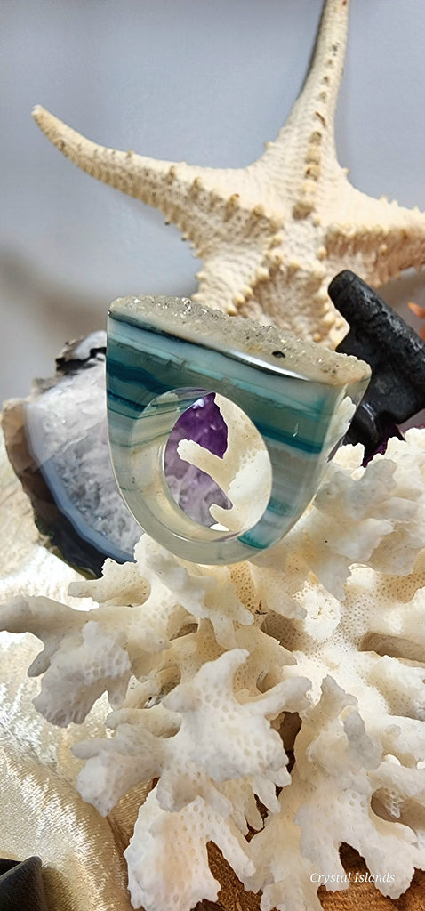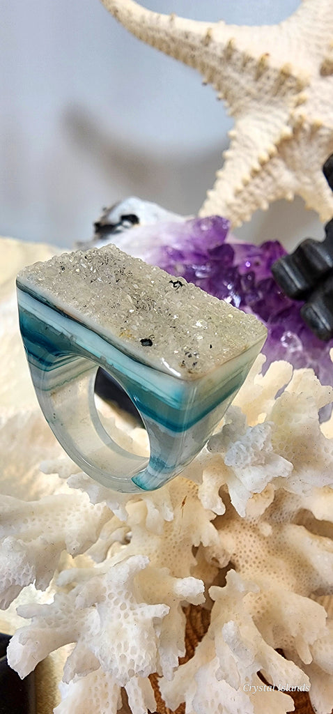 BLUE RAINBOW AURA CLUSTER RING SZ. 8