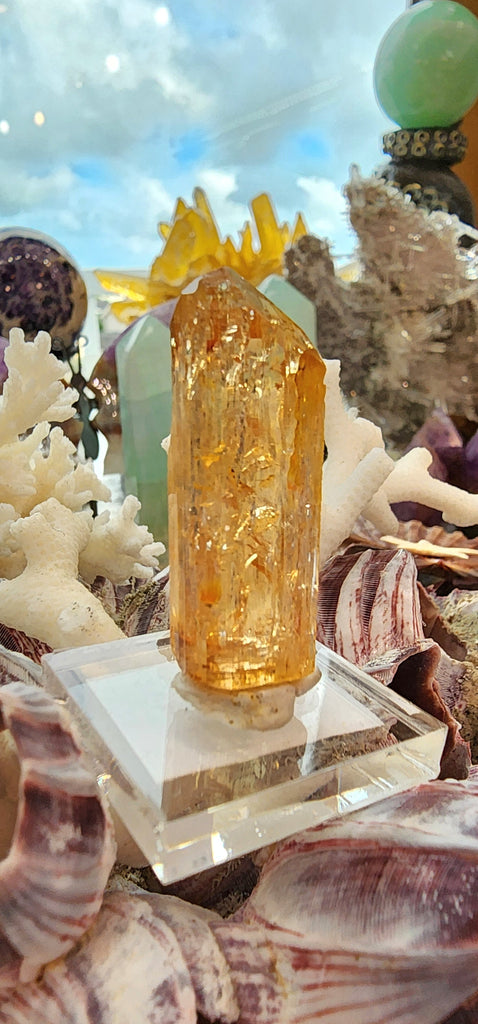 This is a crystal of great value for the enhancement of creativity, personal will and the ability to manifest desires. It allows us to learn the value of emotional boundaries and honoring sacred space. Physically it can be used for urinary and kidney imbalances.