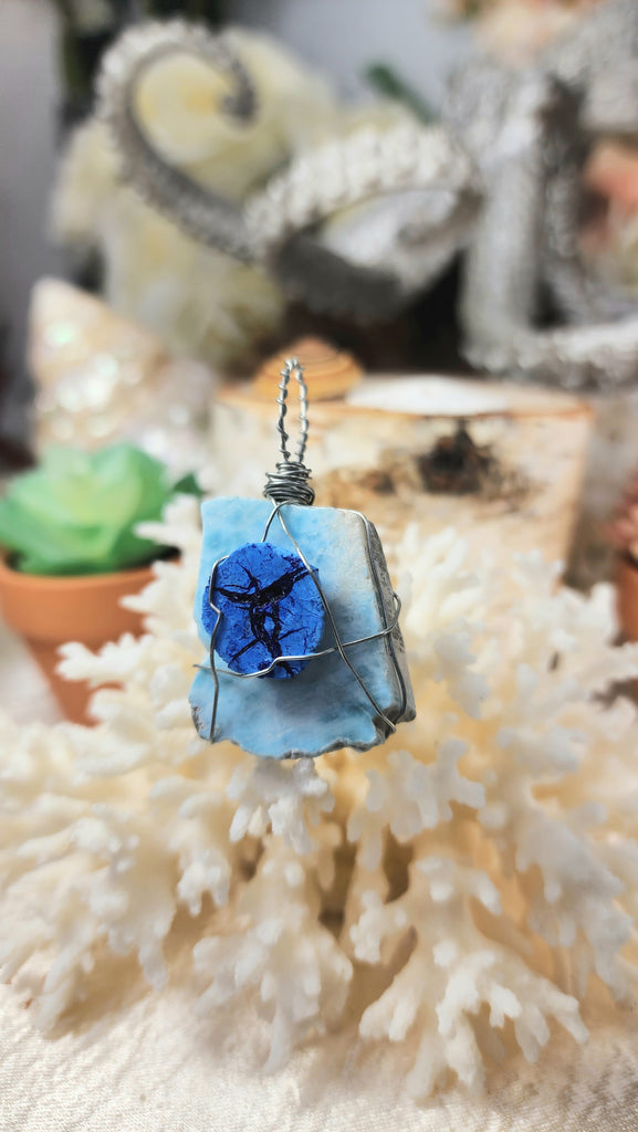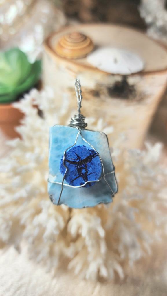 LARIMAR & AZURITE BLUEBERRY PENDANT