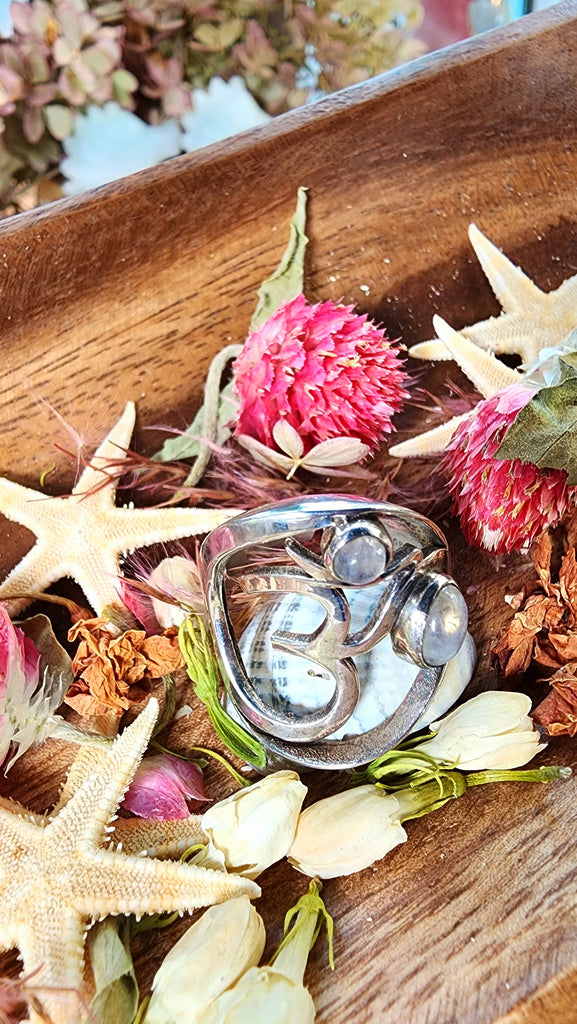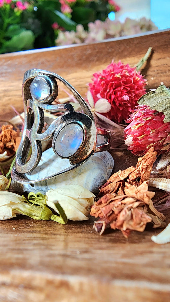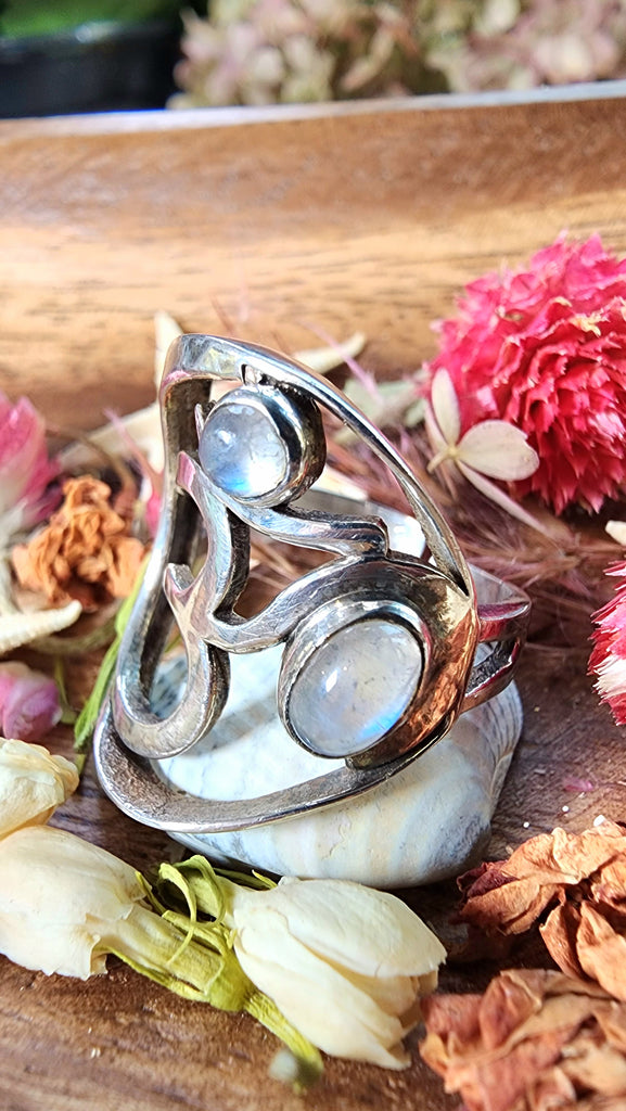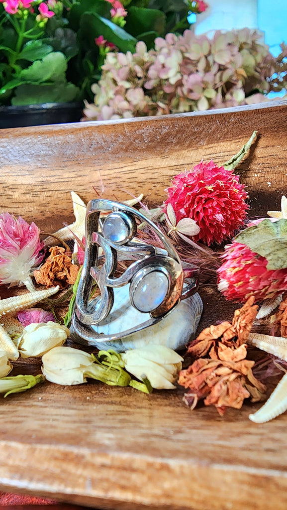 MOONSTONE OM SILVER ADJUSTABLE RING