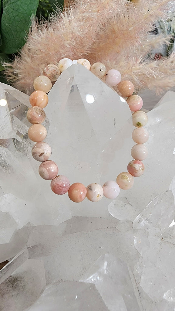 Pink Opal clears and calms the heart and brings a sense of peace and tranquility in one's aura. It is excellent for children who have difficulty sleeping or tend to have nightmares. It can help those who have excessive fear, worry or anxiousness. It directly soothes the heart and can be useful in instances of erratic or irregular heartbeat.