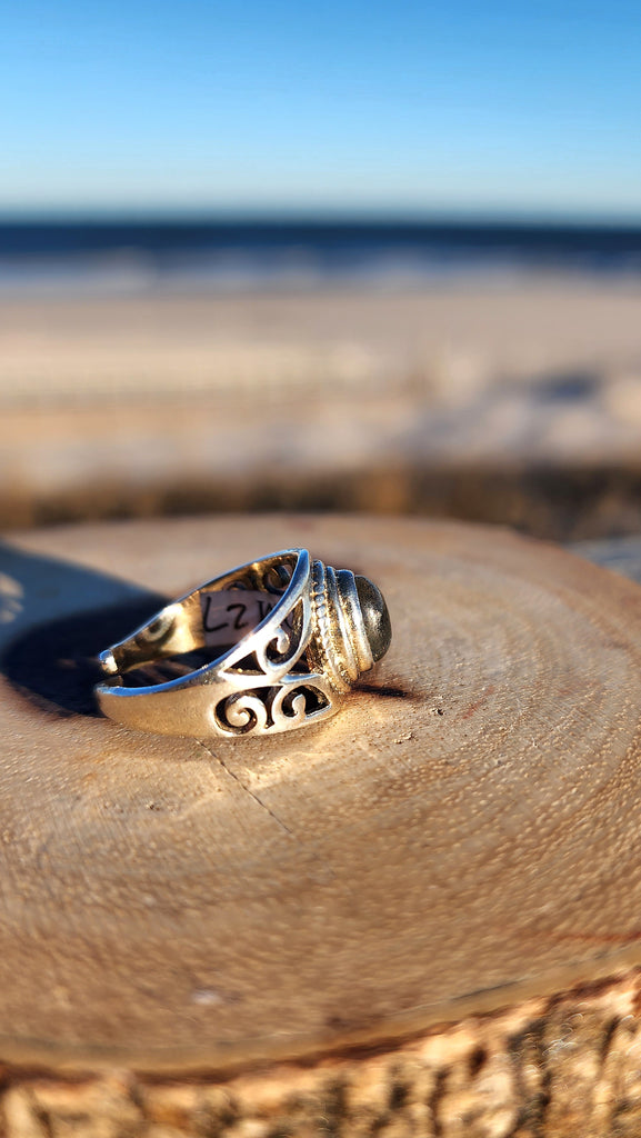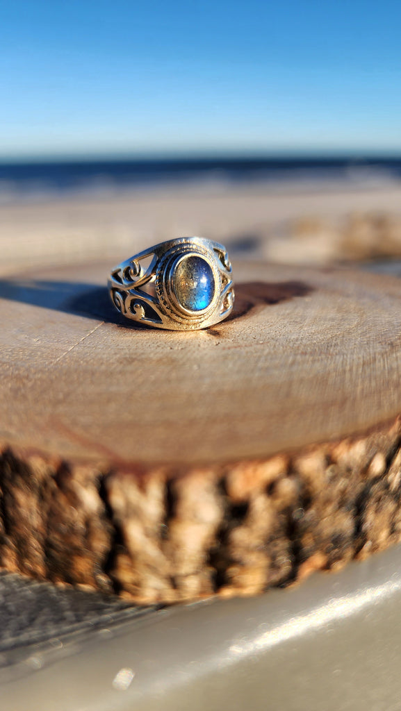Solid silver adjustable Labradorite ring