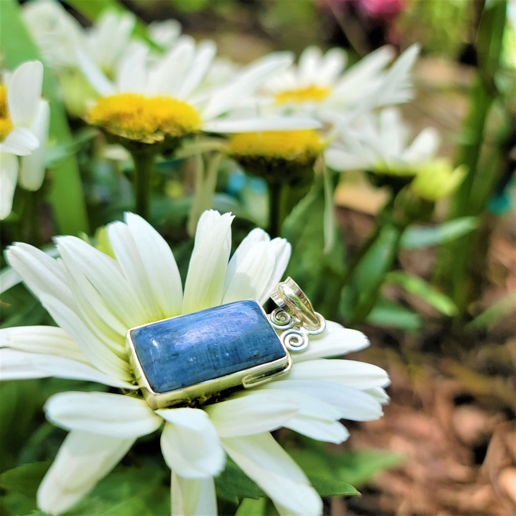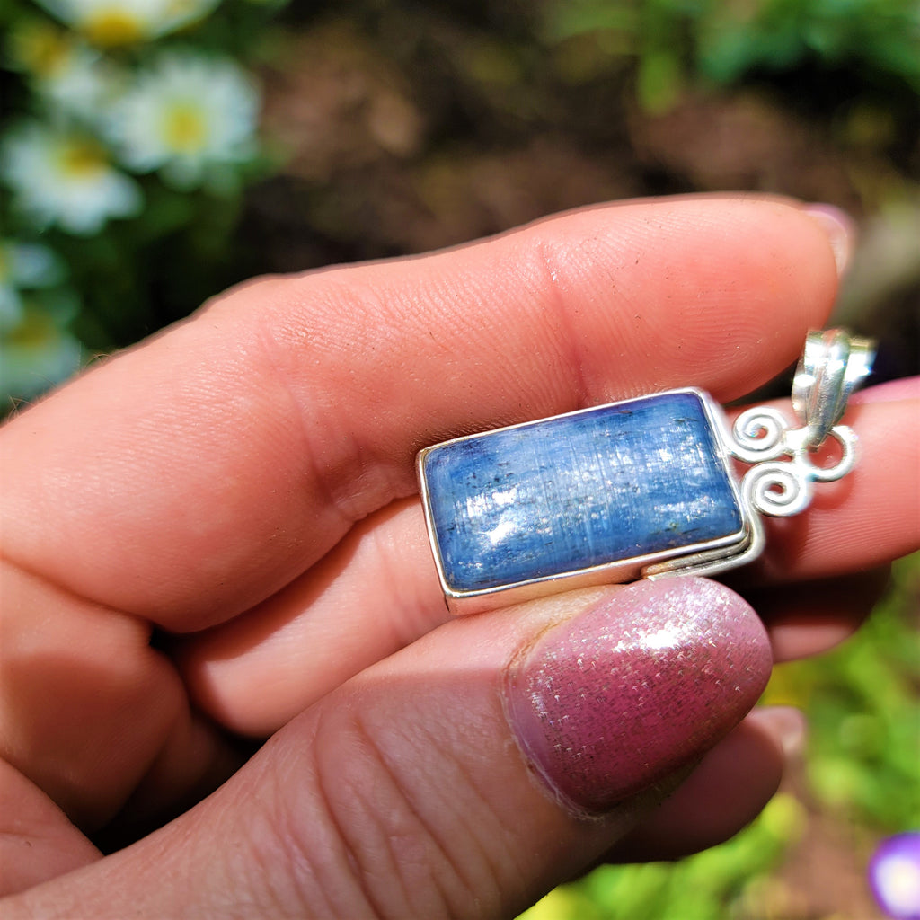STERLING SILVER KYANITE RECTANGLE PENDANT