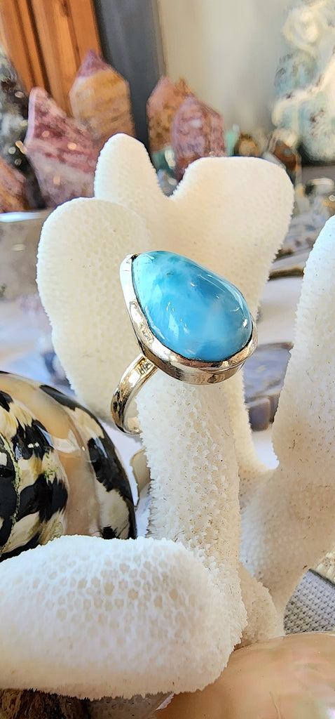 SIZE 8 LARIMAR 925 STERLING SILVER RING