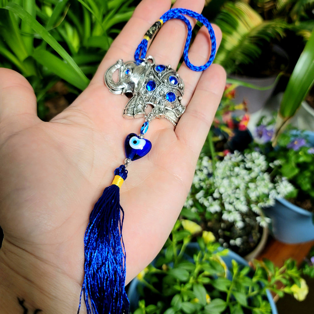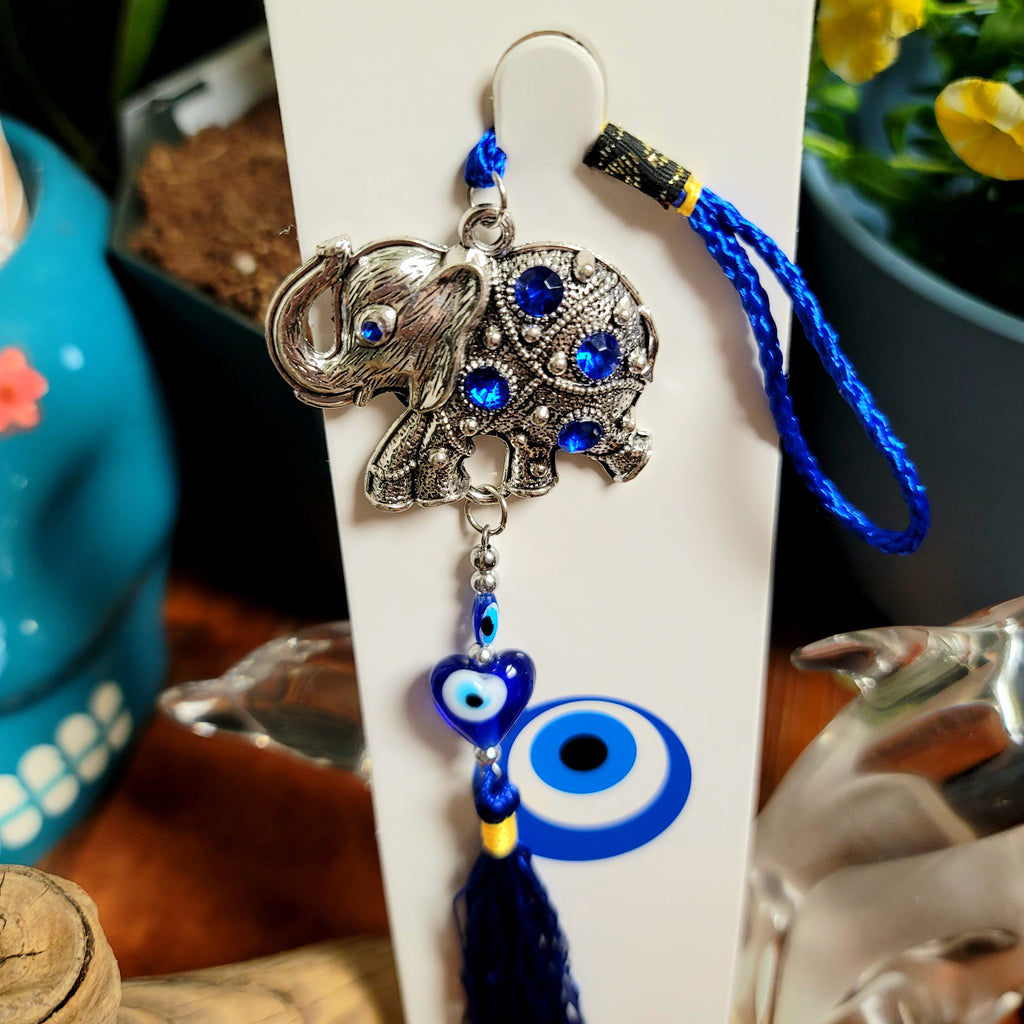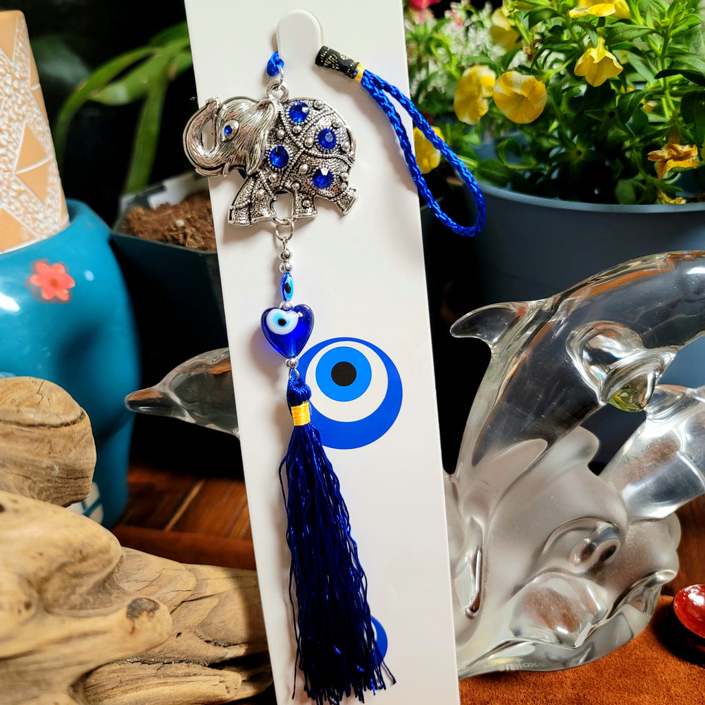 This Evil Eye Elephant can be hung on your rear view mirror or where ever you would like to hang it for protection.
