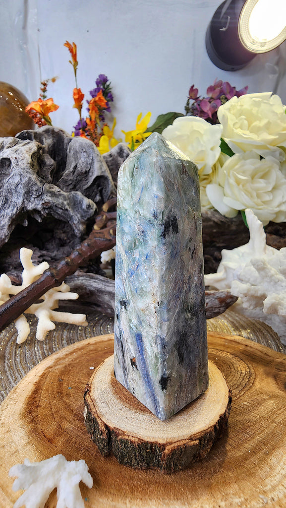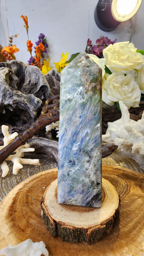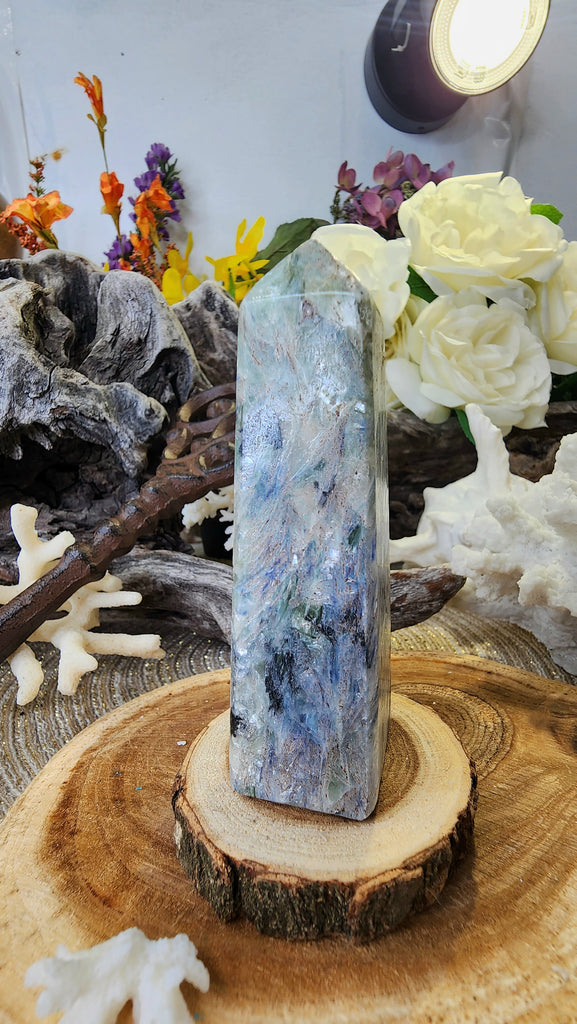Blue Kyanite have a high vibration and create very rapid transfers of energy. They open the psychic channels and activate the mind centers,nd accentuating one's mental capacities and enhancing one's ability to 'download' information from higher sources. It can link the physical, astral and causal bodies, catalyzing full consciousness in waking, dreaming and dreamless sleep.