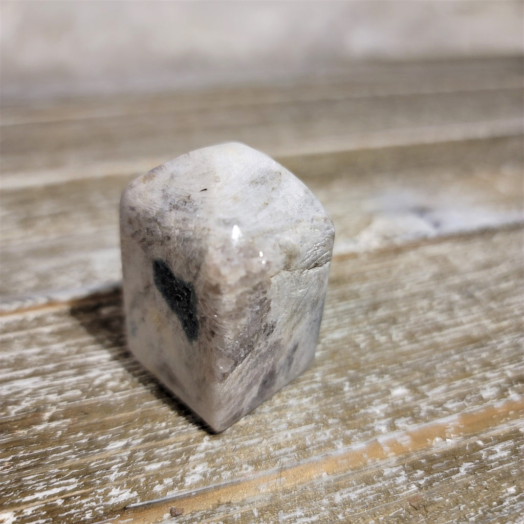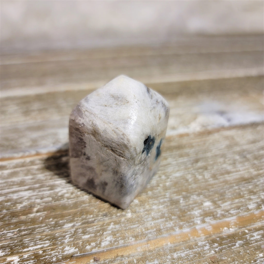 This short fat tower has blue and black tourmaline, lithium quartz, and albite.