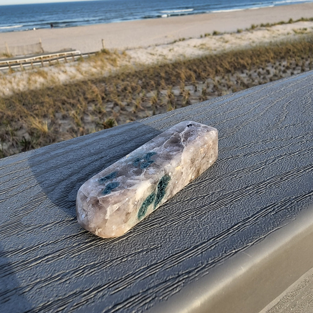 Snowball Euphoralite contains Blue Tourmaline, Quartz, Feldspar. Snowball Euphoralite is extremely helpful in accessing higher realms of consciousness and healing emotional trauma.