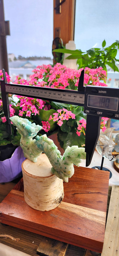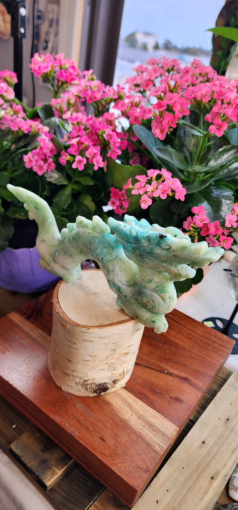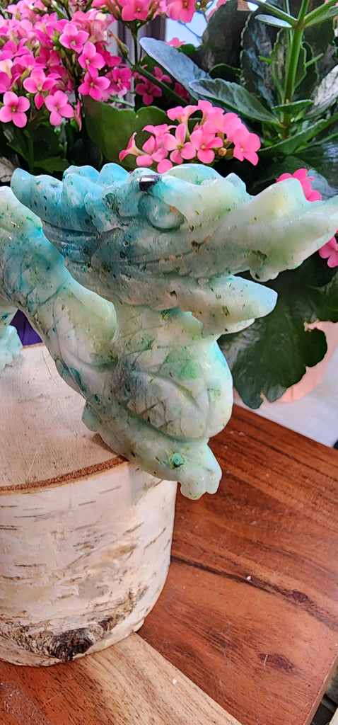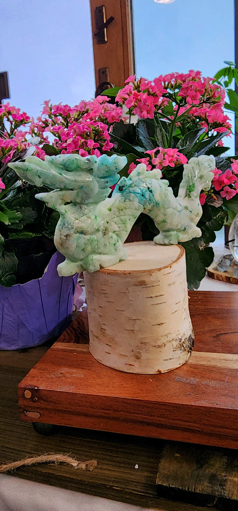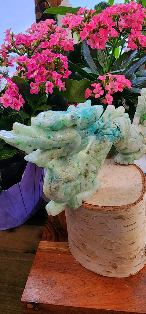 AMAZONITE DRAGON WITH RARE MIXED INCLUSIONS - is backordered and will ship as soon as it is back in stock.