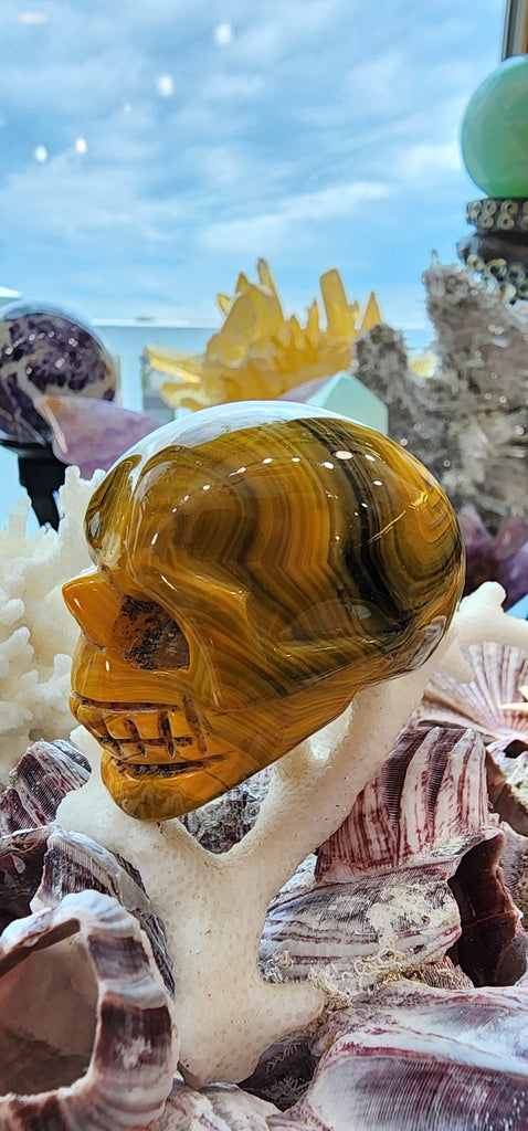 BUMBLEBEE JASPER CARVED SKULL