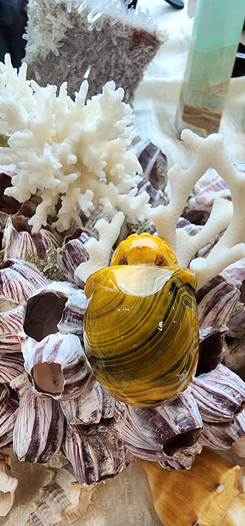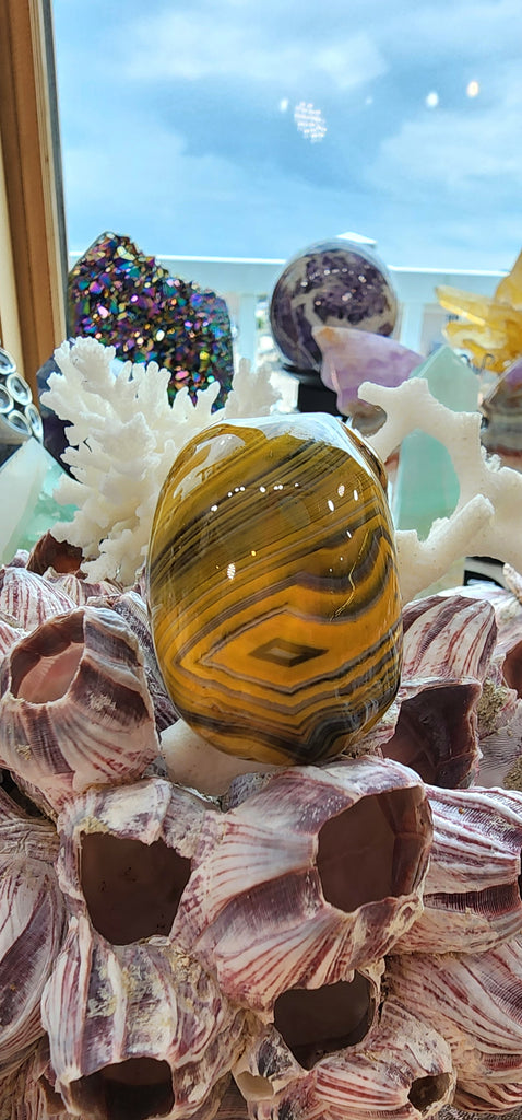 Bumblebee Jasper is a composite mineral discovered in Indonesia in the late 1990s. It forms in volcanic fumarole environments and is a porous, layered, multicolored crystal. These stones are powerful aids for melting passion and purpose together for the unfolding of one's destiny. Its effect on consciousness is to motivate achievement in unusual areas specifically suited to one's inner spiritual makeup.