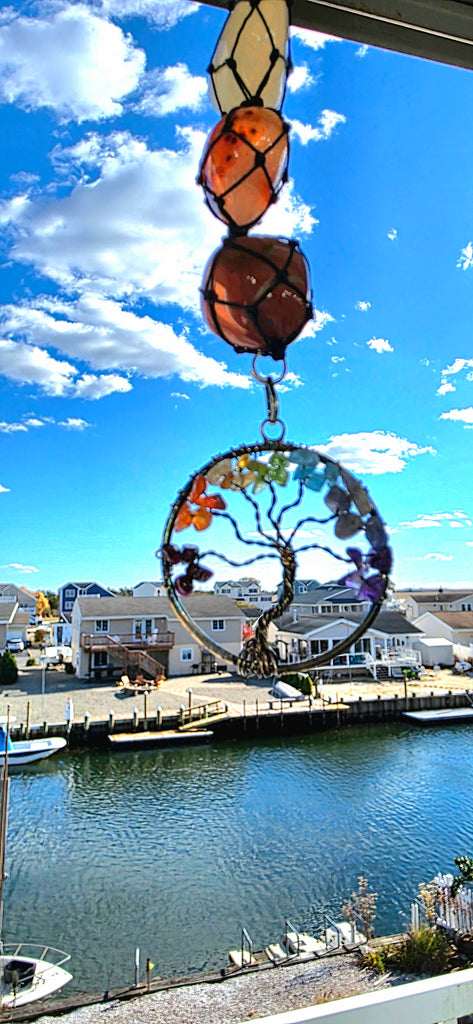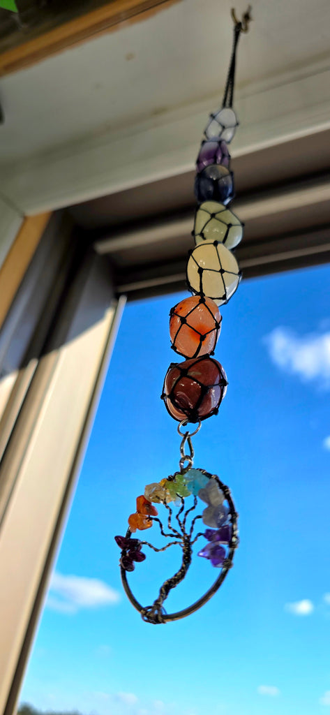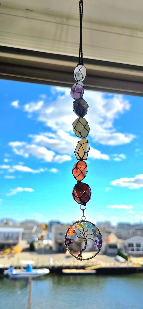 NATURAL CHAKRA STONES HANGING WITH TREE CHARM - is backordered and will ship as soon as it is back in stock.